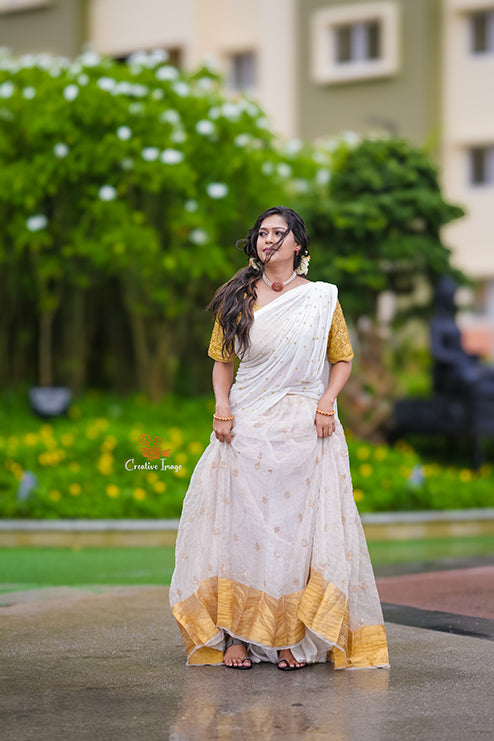 Half Saree Premiam White And Gold Colour