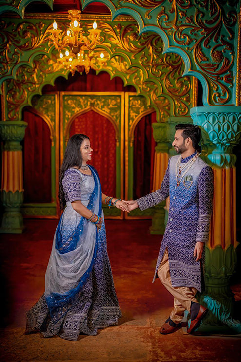 Couple Outfit Premium Blue Handwork Lehenga and Sherwani