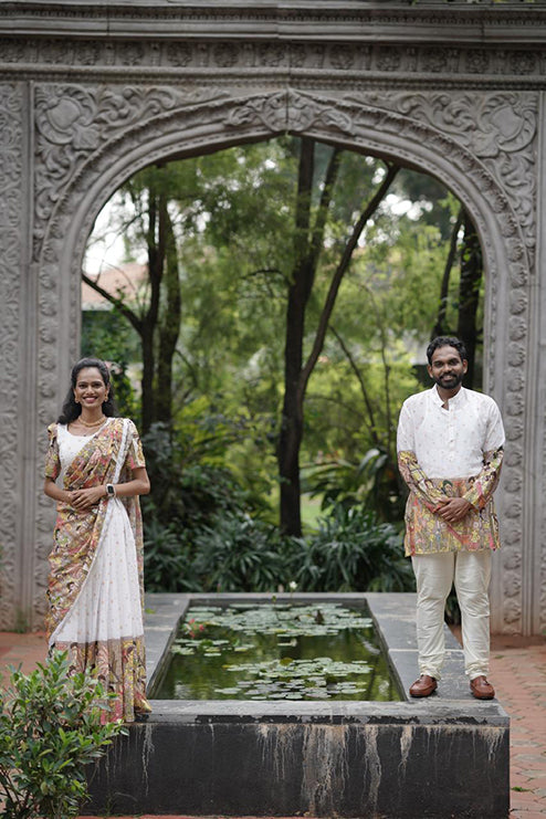 Couple Outfit Premium White Half Saree with Embroidery and White Kurta
