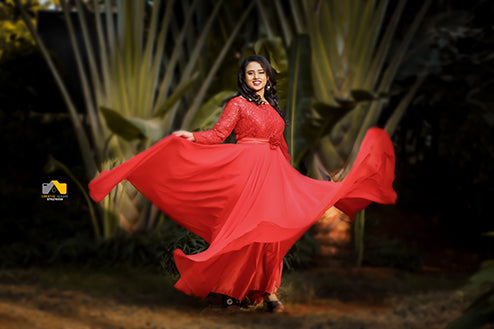 Pree Wedding Long Tail Gown Red Colour