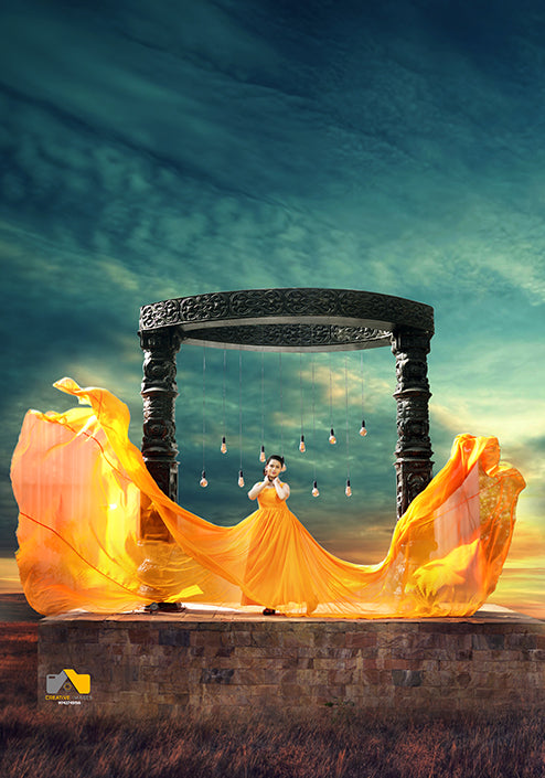 Pree Wedding Long Tail Gown Orrenge Colour