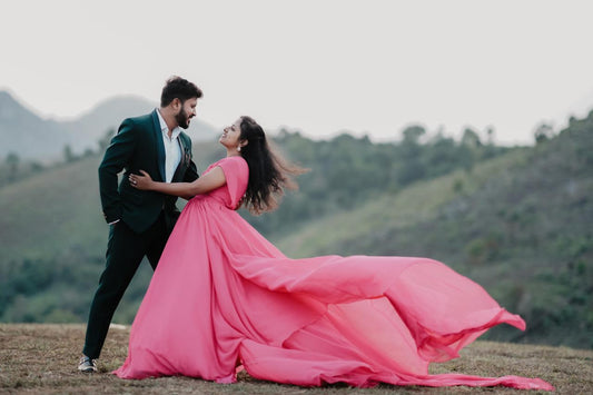 Pre Wedding Long Tail Gown Pink Colour