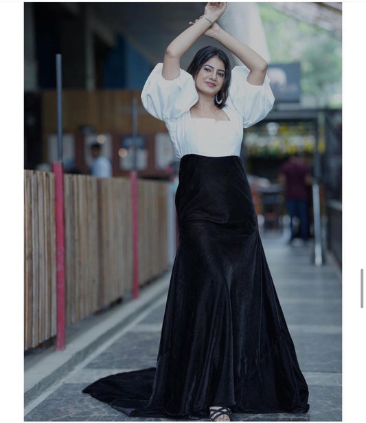 Pre Wedding Long Tail Gown Black And White Colour